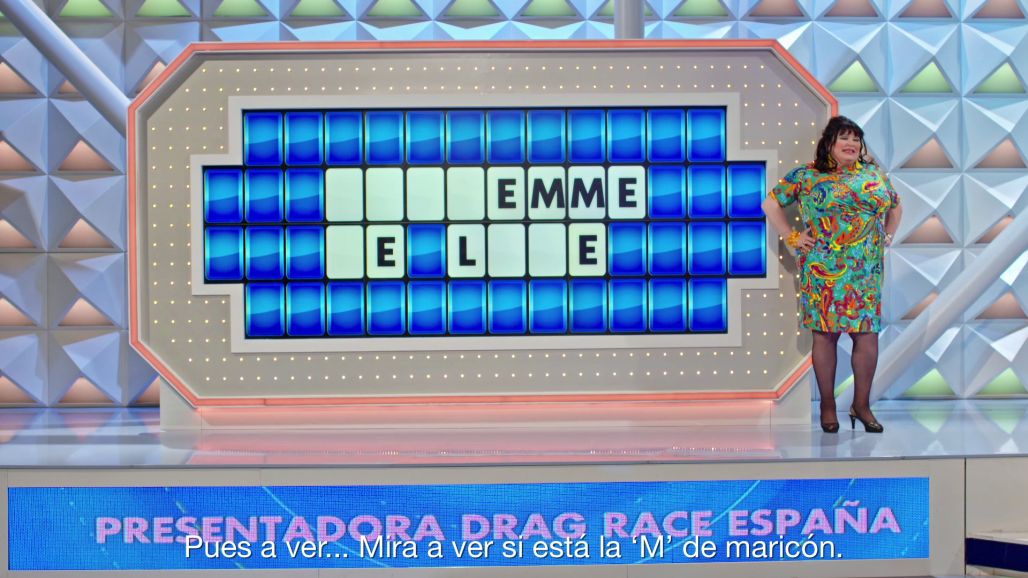 Paca La Piraña participa en 'La Ruleta de la suerte' en un panel de 'Drag Race España'.