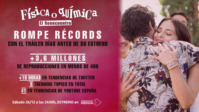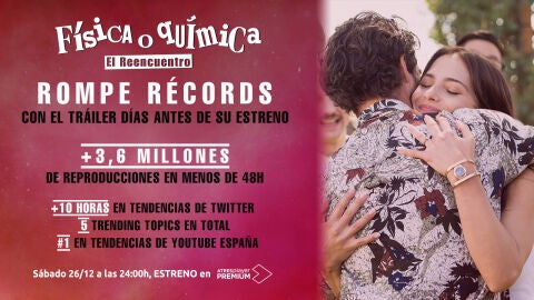 El tráiler de 'Física o Química: el reencuentro' ha logrado romper todos los récords. El vídeo ha llegado a alcanzar más de 3,6 millones de reproducciones en menos de 48 horas, ¡menuda pasada!