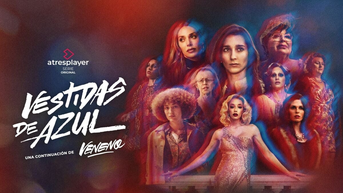 Vestidas de azul mantiene la misma estructura narrativa que Veneno, a caballo entre el presente y el pasado, entrelazando las vidas de sus protagonistas. Aborda la realidad de las personas trans de los años 80, una época muy hostil para el colectivo, a través de las seis protagonistas del documental Vestida de azul. Ellas estarán interpretadas por Rossa Ceballos (Loren adulta), Bimba Farelo (Loren joven), Chloe Santiago (Tamara), Geena Román (Eva) y Alma Gormedino (Josette), Penélope Guerrero (Nacha) y Keyla Òdena (Renee).